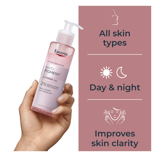 Achieve a bright and even complexion with the Eucerin anti-pigment collection, which features a range of anti-dark spot skincare.