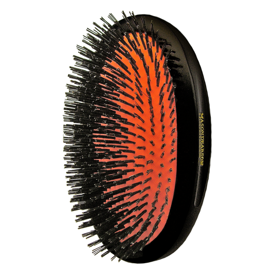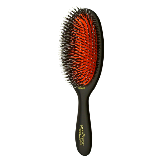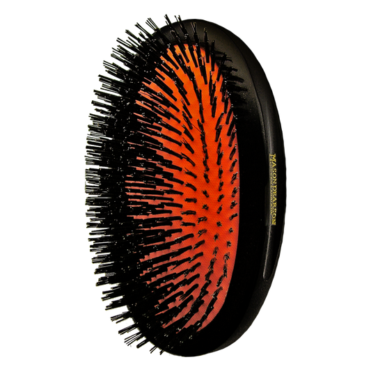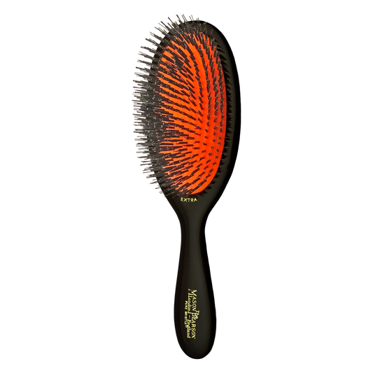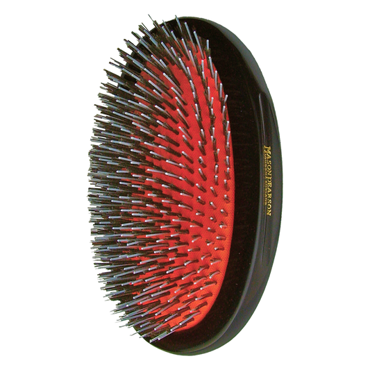 Their unique pneumatic rubber-cushion pad, made by hand using Mason Pearson's original techniques, allows for effective and efficient brushing. It is kind to use and massages the scalp.