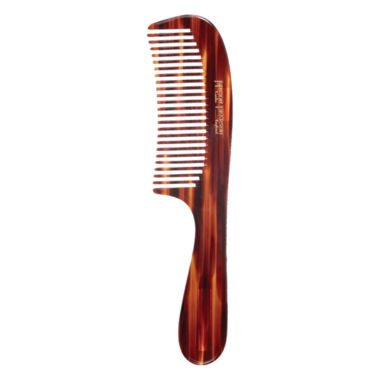 The cellulose plastic handle is hand-polished and any sharp edges are removed to make the hairbrush more comfortable to hold.