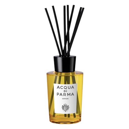 PACKAGING: The diffuser comes in the Maison's iconic Art Deco bottle in its signature yellow shades. It is topped off by a precious cap in the iconic Acqua di Parma shape and natural rattan reeds.