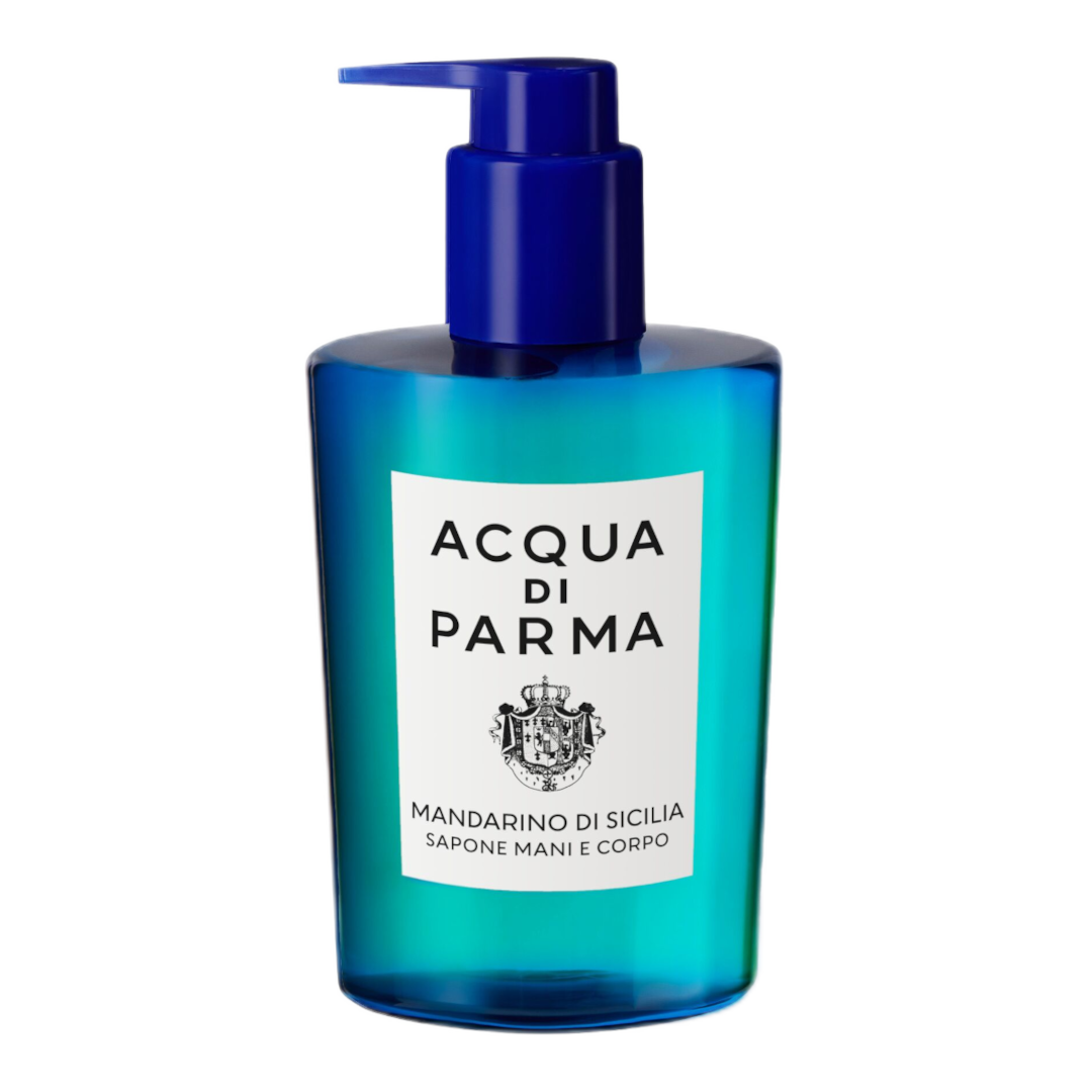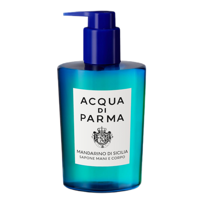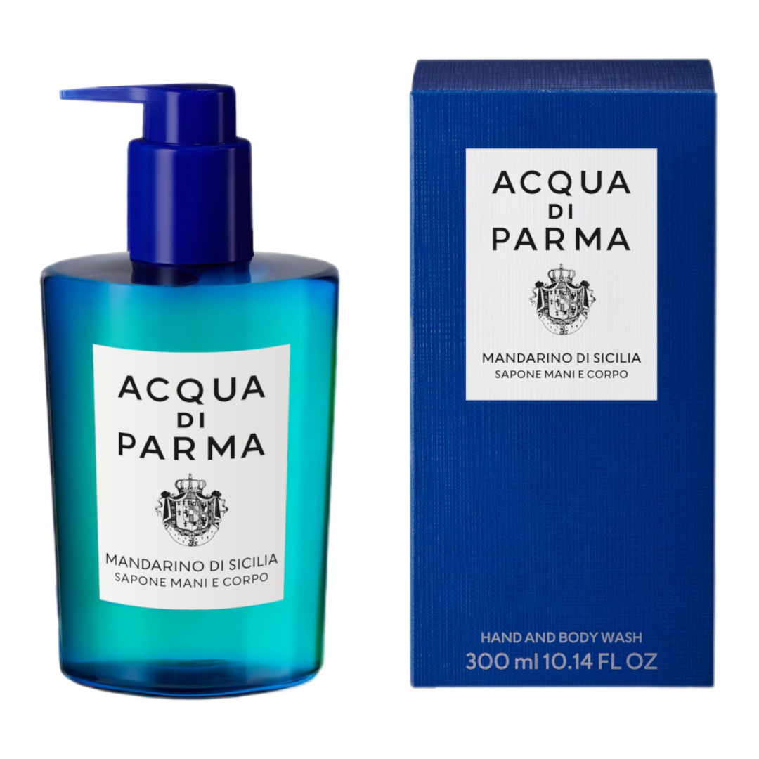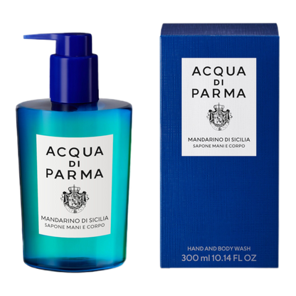 Acqua di Parma Blu Mediterraneo Mandarino di Sicilia Hand and Body Wash is a versatile dual-purpose formula bursting with lively notes of Blu Mediterraneo’s Mandarino di Sicilia and pampering properties that leave skin clean, soft, and feeling moisturised. Perfect as a hand wash or in the shower for the body, it applies to the skin effortlessly with a pleasant texture and foams into a light lather that is easy to rinse off. The dual wash's notes of green mandarin, bergamot, lemon, and juicy red orange evoke the brightness of a Sicilian summer. Housed in a bottle made from recycled plastic with a removable screw pump to optimise the recycling process, the product also features an FSC-certified paper secondary pack. A pampering experience that will leave your skin lingering in the fragrance of Mandarino di Sicilia.