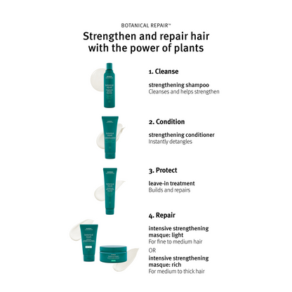 As the shampoo is sulphate free, only a small lather forms as you wash with a natural ylang-ylang and herbaceous scent. But don't be fooled; the shampoo is excellent at removing oil and styling products whilst being gentle to your scalp. Any hair type, texture and colour can use the strengthening shampoo, and when combined with the rest of the Botanical Repair range, your hair will be stronger and healthier.