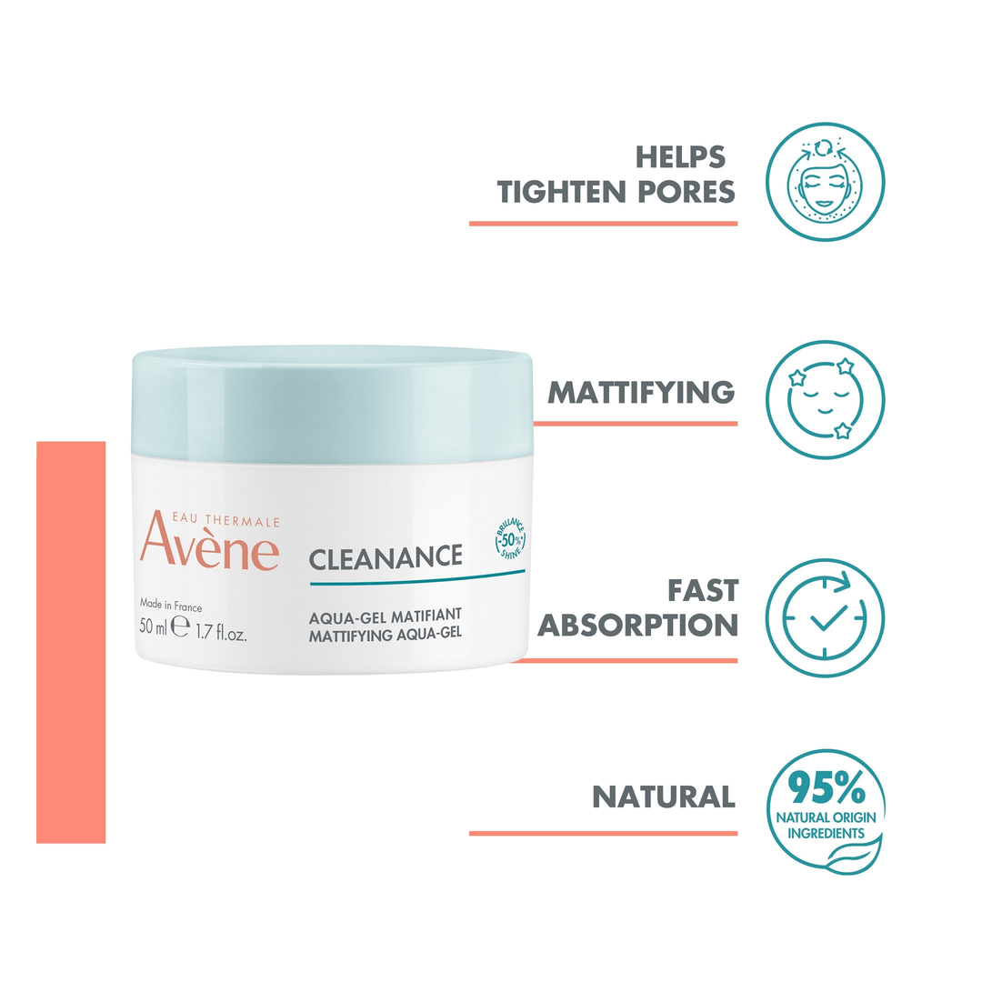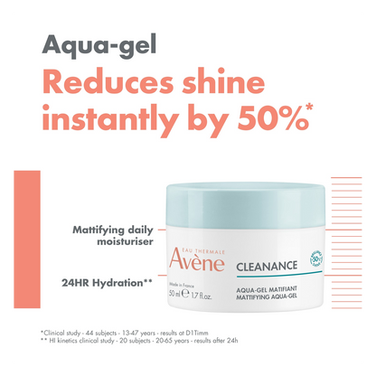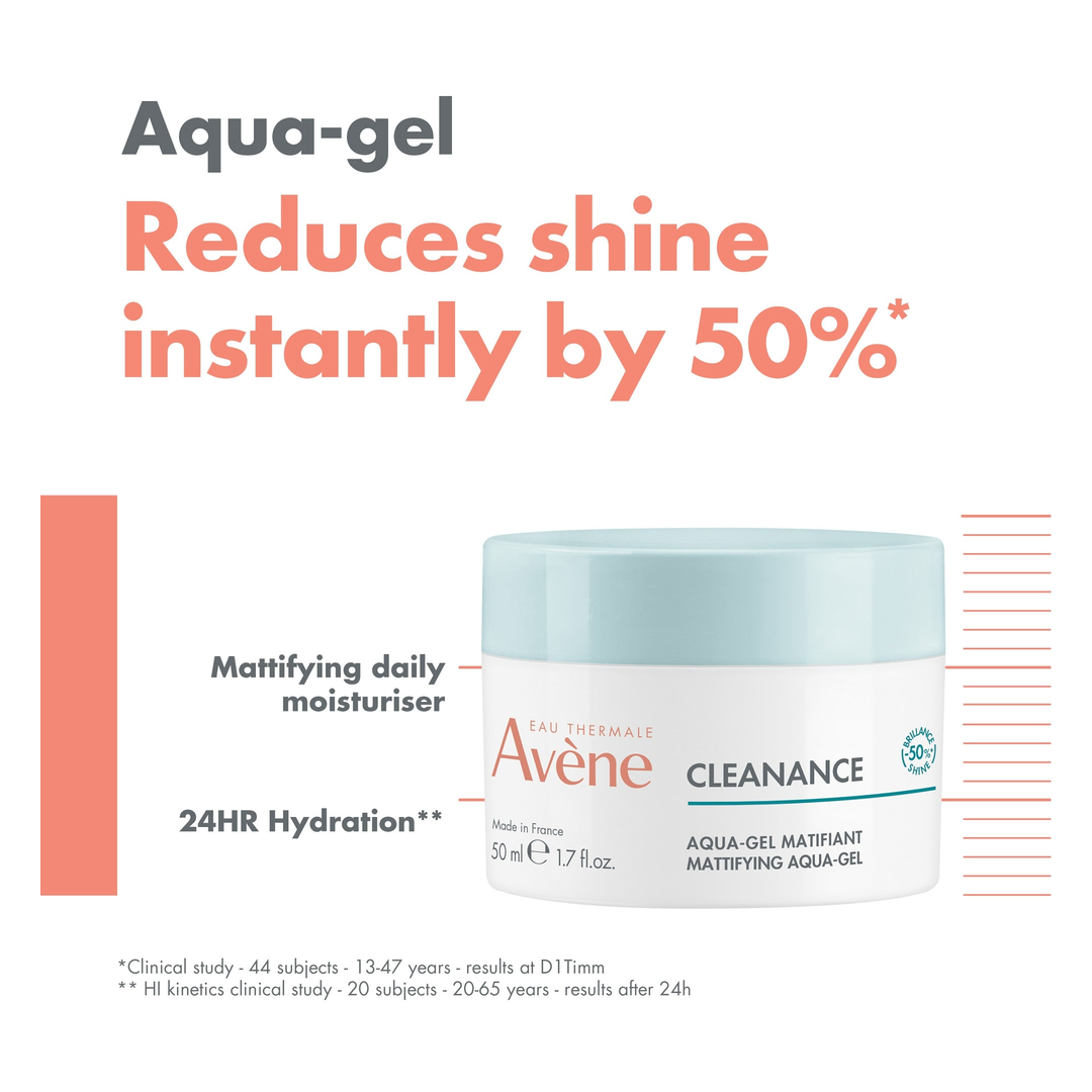 Cleanance Aqua Gel is a multi-benefit moisturiser for sensitive, oily skin with imperfections. Its Monolaurin enriched formula immediately reduces shine by 50%* without drying out the skin, thanks to soothing Avène Thermal Spring Water.