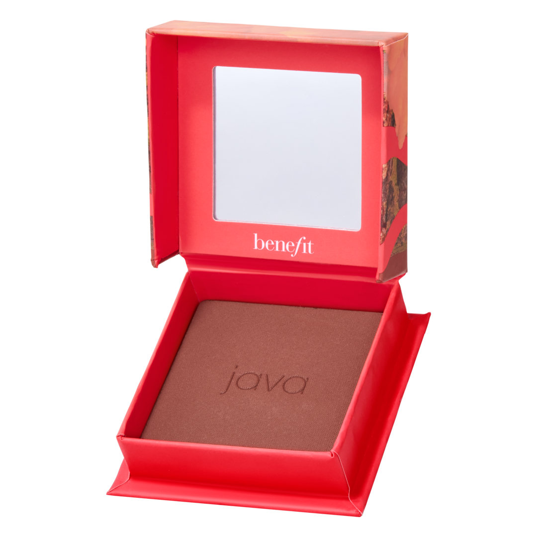 The ultra-lightweight powder blush, Java, creates a soft-focus, airbrushed finish thanks to its creamy formula, which blends to perfection in seconds. As an added bonus, the powder features freshwater pearl and synthetic sapphire to add a luminous, natural-looking smooth reliance to your skin. And in true Benefit style, Java has a subtle floral scent that you'll want to breathe in every time you use it. But don't worry - the formula won't clog your pores.