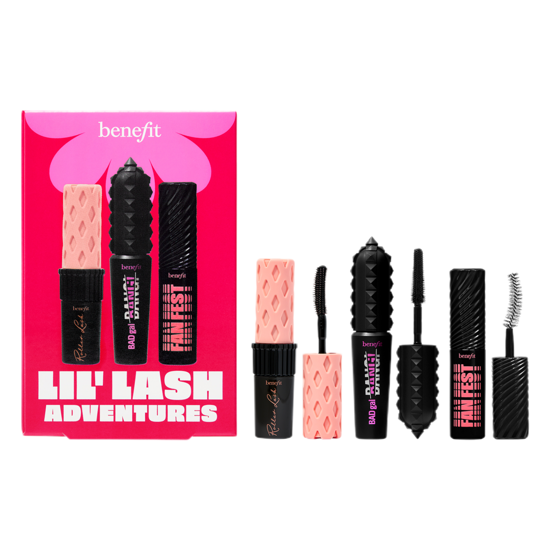 The Benefit Lil' Lash Adventures mascara trio is the ultimate set for the last lover on the go, with a Mini volumizing mascara, super-curling & lifting mascara, and fanning & volumizing mascara - no matter the look, you have the mini for you!