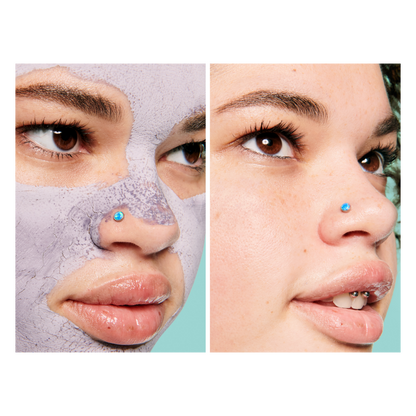 The purple clay face mask uses innovative technology, revealing the presence of dirt while drawing it out. It is formulated with mineral-rich kaolin clay to absorb sebum and prevent clogging, along with essential fatty acids and plum kernel oils for hydration and skin softening. Sea fennel boosts elastin and collagen, while prickly pear flower extract improves skin texture. Benefit's commitment to effective pore care sets it apart from the competition.