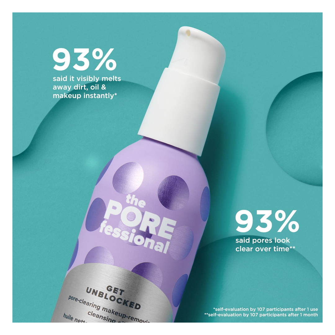 silky-smooth cleansing oil does it all “ visibly loosens & melts away makeup, visibly unblocks &