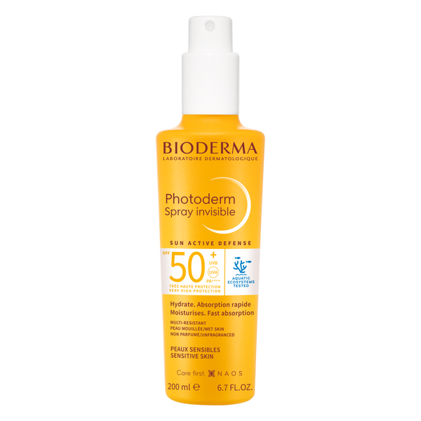 Photoderm Spray SPF50+ guarantees optimum UVA/UVB protection while activating the skin's natural defences. This sunscreen leaves no oily film or white traces. Easy to apply. Non-comedogenic, un-fragranced, and very water-resistant.