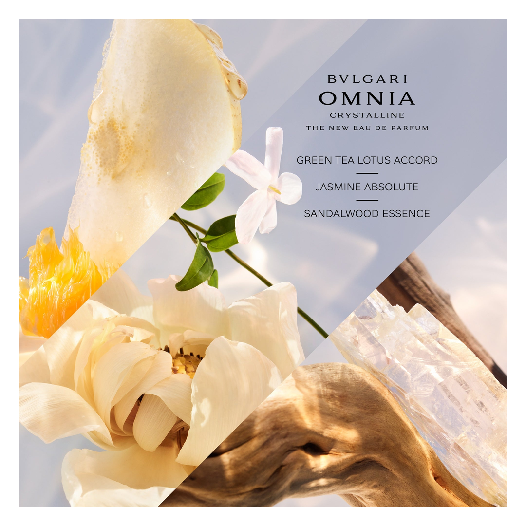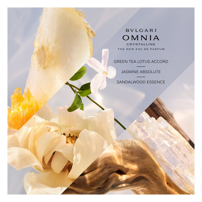 A more precious and intense interpretation of Bulgari’s most iconic feminine fragrance. Crafted around the same signature accords of Nashi Pear and Lotus as the Eau de Toilette, Omnia Crystalline Eau de Parfum pushes the boundaries of creativity and olfactive craftsmanship with a new composition signed by Master Perfumer Alberto Morillas. The Eau de Parfum exalts the beauty of the original vision with three new vibrant gems of nature: Green Mandarin essence, Jasmine absolute and Sandalwood essence.
