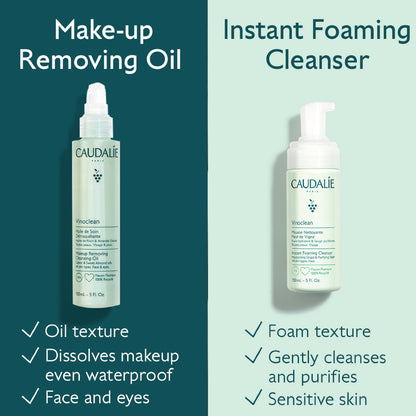 Warm three pumps of the Caudalie Cleansing Oil between your palms before massaging into dry skin. Emulsify with a little water - either with your hands or a hot cloth - before rinsing thoroughly and patting dry. Try creating a luxurious foam cocktail by mixing with the Caudalie Vinoclean Instant Foaming Cleanser.