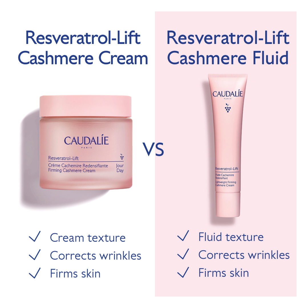 Formulated with 97% natural ingredients and with a more weightless texture than the original, the Caudalie Resveratrol-Lift Lightweight Cashmere Cream is a firming, hydrating and smoothing daytime face cream. Wrinkles and fine lines are smoothed away while areas of sagging are toned, firmed and lifted.