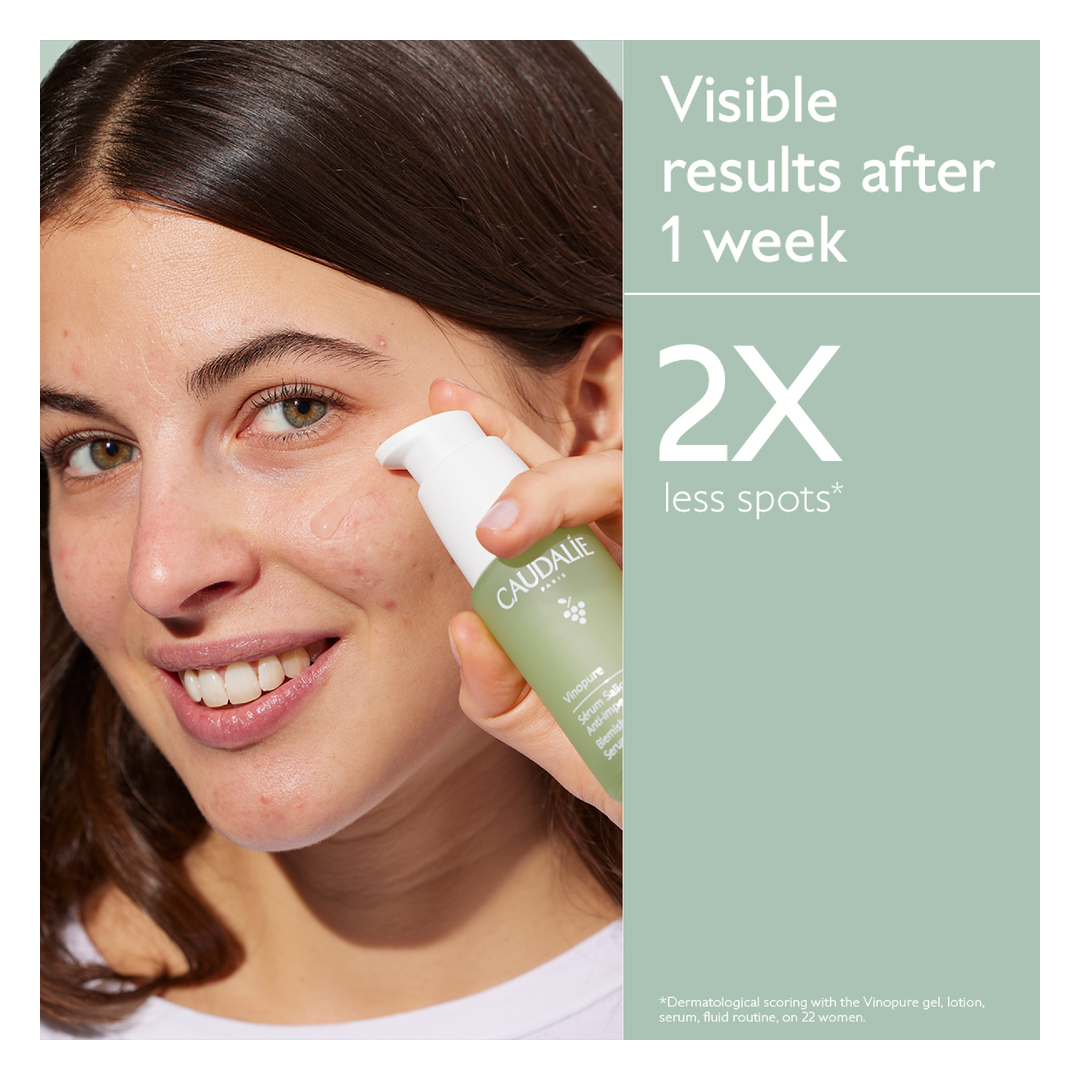 Apply the Caudalie Vinopure serum to your face morning and evening before using your moisturiser, taking care to avoid the eye contour.