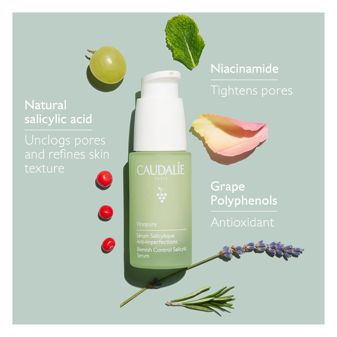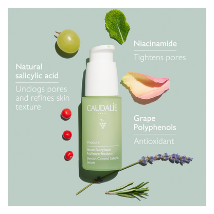 ''Tighten and unclog your pores with the Caudalie Vinopure Blemish Control Salicylic Serum. This anti-blemish treatment refines skin texture and reduces imperfections for a clear, healthy, shine-free glow.'' - Darcey, Escentual Beauty Team.