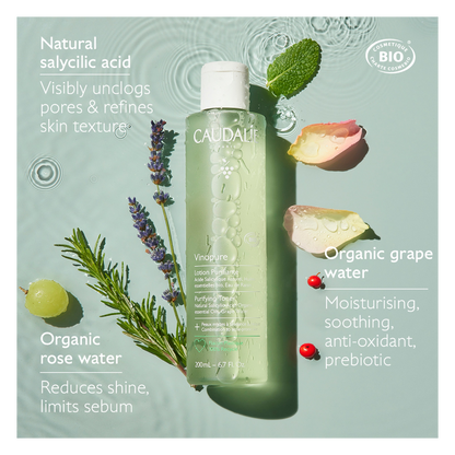 ''Purify, mattify and clear your complexion with the Caudalie Vinopure Purifying Toner, a refreshing liquid toner that reduces breakouts and tightens pores.'' - Darcey, Escentual Beauty Team.