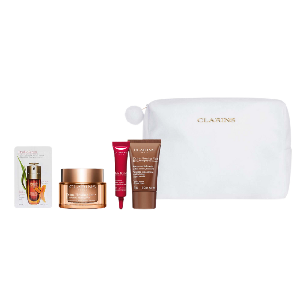 • Includes the best-selling Clarins Extra-Firming Day and Night Cream.