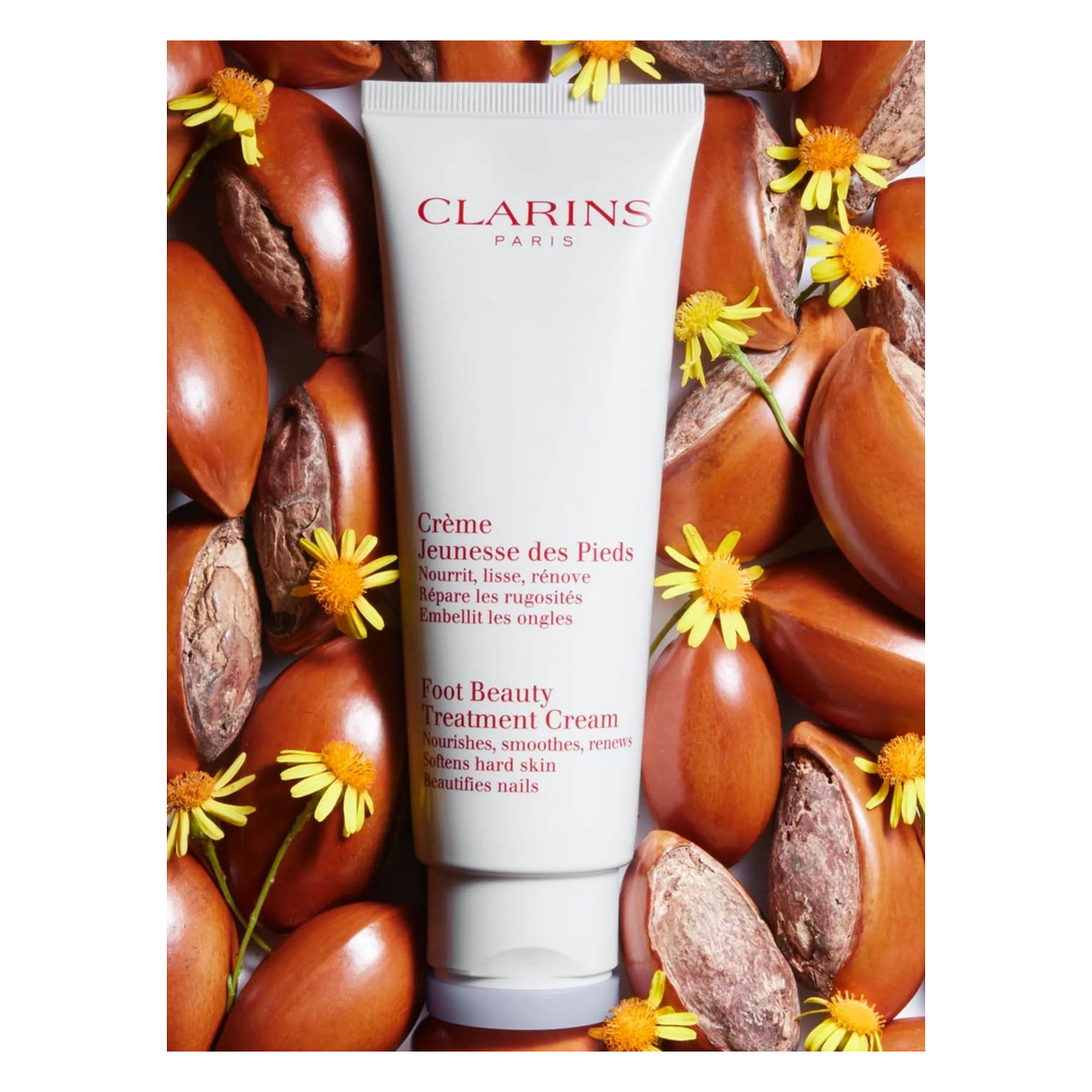 Pamper feet with the luxuriously rich and easily absorbed Clarins Foot Beauty Treatment Cream to nourish and soothe the hard-worked and oft-neglected skin of the feet.