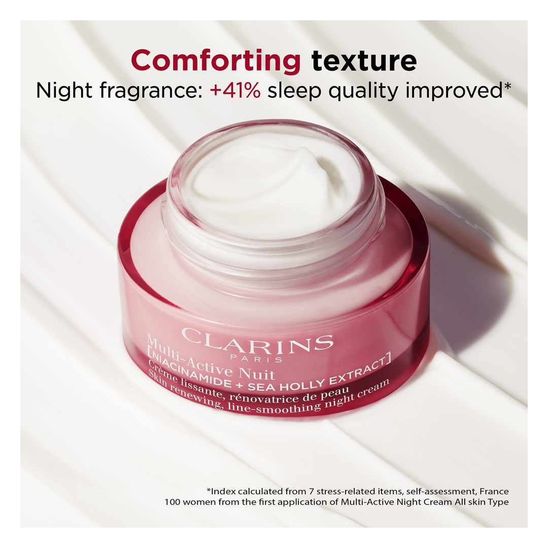 "I wake up to radiant-looking skin when I use the Clarins Multi-Active Night Cream - All Skin Types; my skin looks smoother, more hydrated and generally more youthful. " - Ceryn, Escentual Beauty Team.