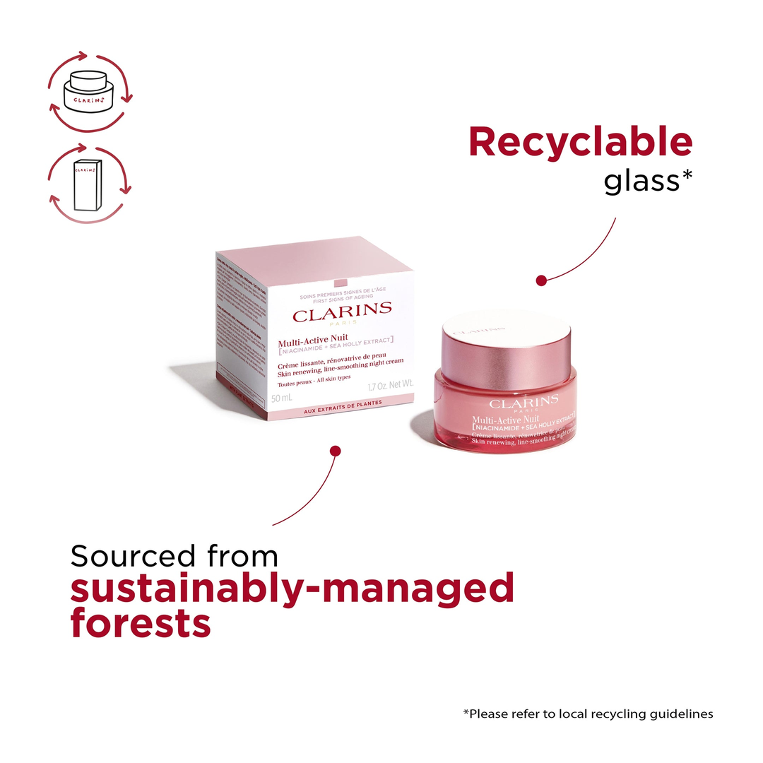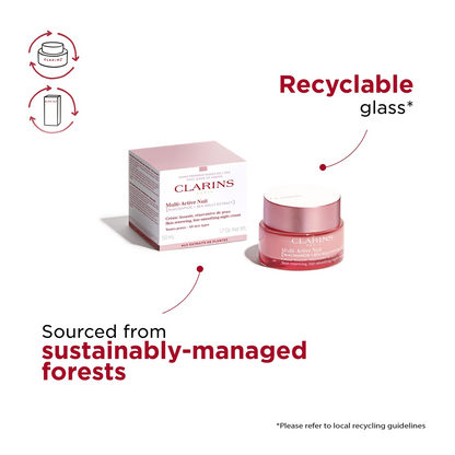 The Multi-Active Night Cream comes in a carton printed on paper from sustainably managed forests.