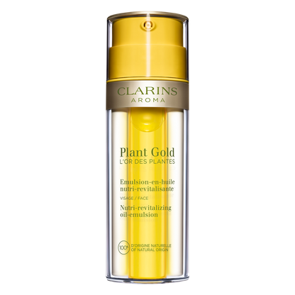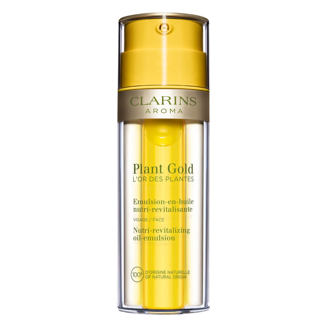 Clarins Plant Gold Oil-Emulsion is a daily moisturiser for all skin types that uses 100% natural origin oils to make your skin glow.