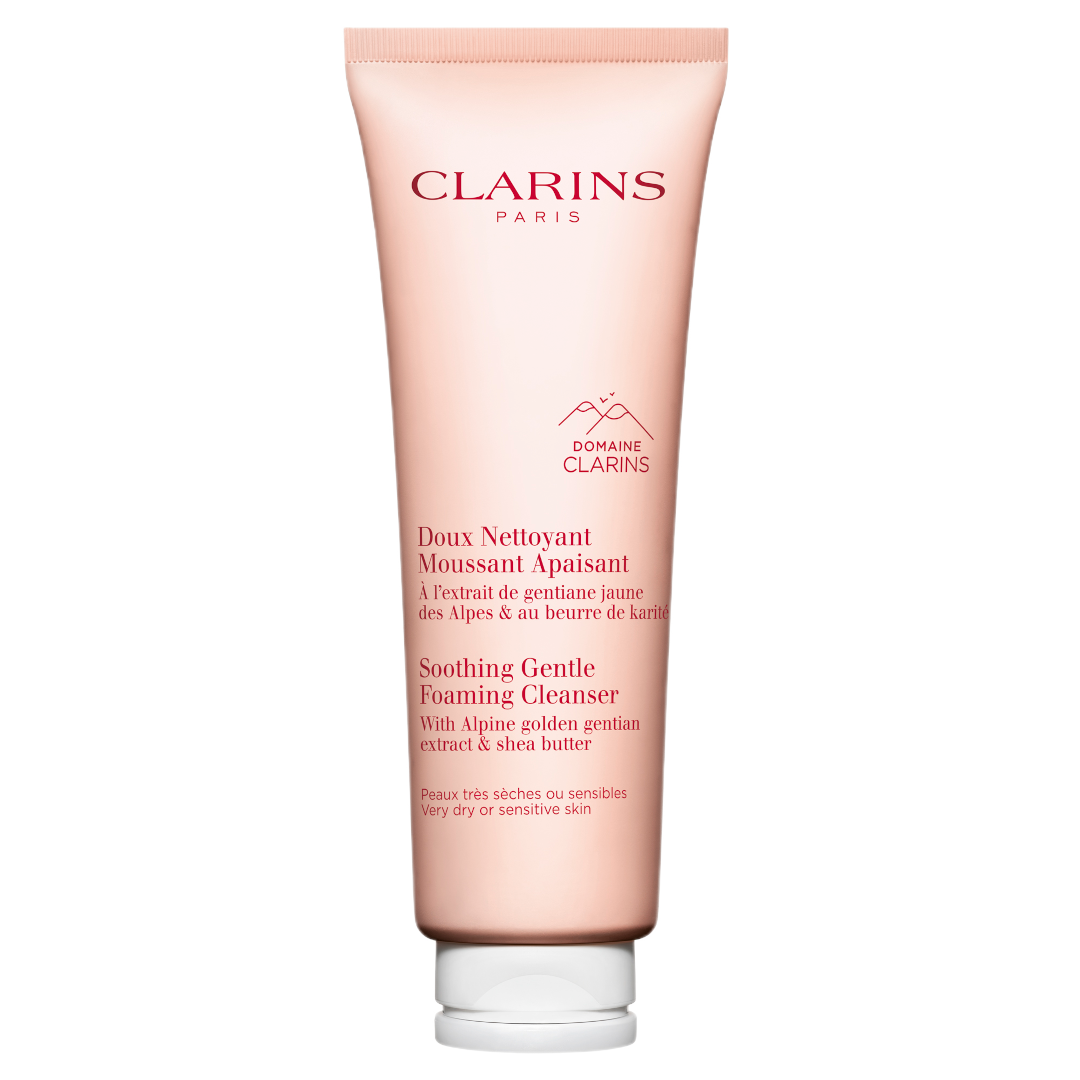 If you have sensitive or very dry skin prone to redness and discomfort, the Clarins Soothing Cleanser will be a welcome treat. It doesn't strip anything away as it performs a gentle yet through cleanse that leaves skin soft, comfortable and soothed. The inclusion of naturally lathering organic saponaria creates a rich and silky foam that gently lifts away makeup, pollution and daily dirt while balancing the microbiome. Clarins' Gentle Complex blends Alpine herbs organic gentian and lemon balm to soothe and soften the complexion during cleansing while nourishing shea butter comforts the skin. Detoxifying moringa extract eliminates pollution while vegetal squalane protects the skin's hydrolipidic film from dryness and dehydration. Plus, the scent ensures a pampering self-care ritual every time! The floral notes of honeysuckle, ylang ylang and coca blossom cocoon the skin while delighting the senses and reminding you of the hardworking and natural formula within.