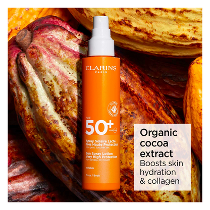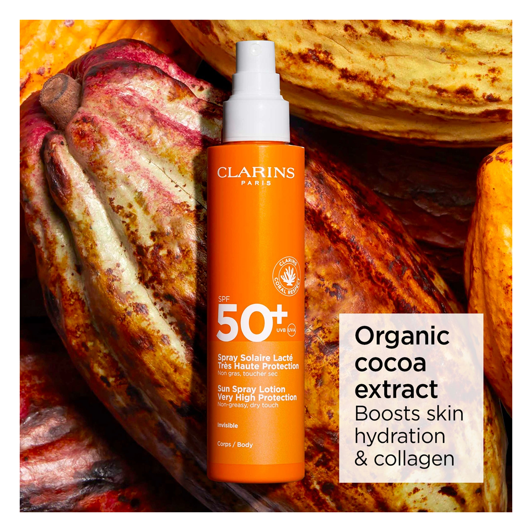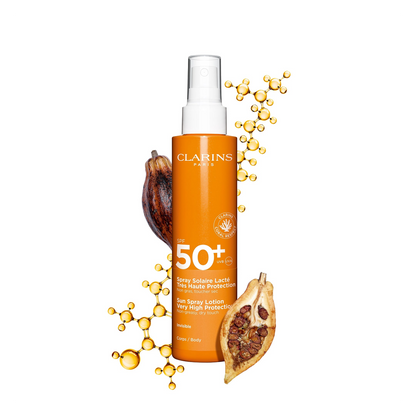 Clarins Sun Spray Lotion Very High Protection SPF50+ is formulated with an eco-friendly consciousness, using recycled packaging materials.