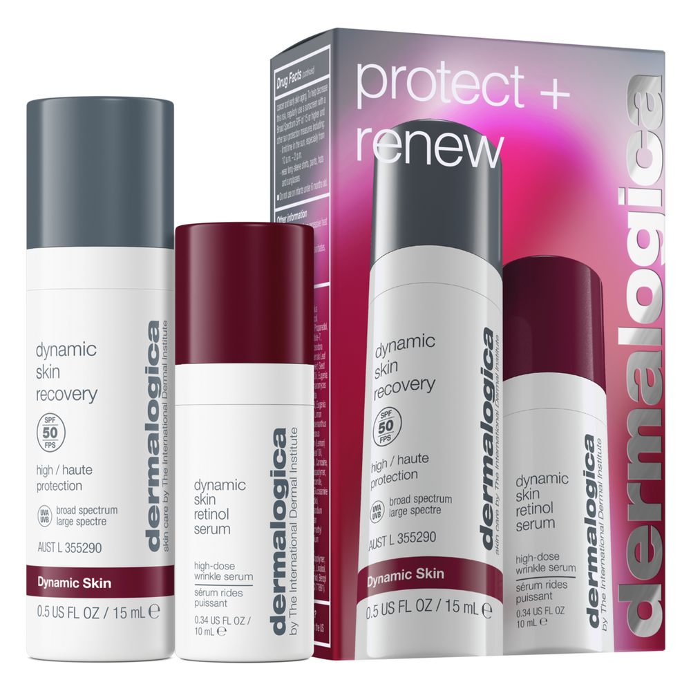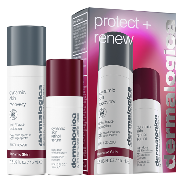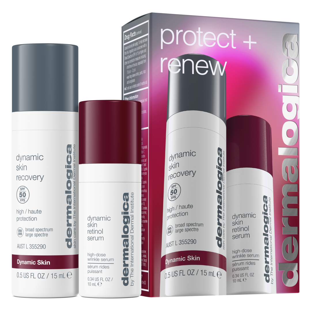 Our multi-benefit broad spectrum daily moisturizer hydrates, smooths, and protects skin against UVA and UVB rays. Dynamic Skin Retinol Serum features a 3.5% retinoid complex targeting the appearance of wrinkles and working to retexturize skin, minimize the appearance of pores, and even skin tone.