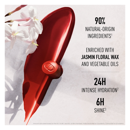Just like the lipstick, the Dior Addict refill boasts a creamy texture that glides on the lips. It is formulated with 90%* natural-origin ingredients and gives lips 24h** of hydration while enhancing them with 6h*** of vibrant, ultra-glossy colour.