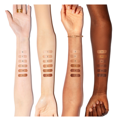 Shade 0: Aqua (Water), C9-12 Alkane, Mica, Dicaprylyl Ether, Coco-Caprylate/Caprate, Propanediol, Polyglyceryl-6 Polyricinoleate, Disteardimonium Hectorite, Polyglyceryl-2 Isostearate, Lecithin, Euphorbia Cerifera (Candelilla) Wax Extract, Glycerin, Pentylene Glycol, Polyglyceryl-10 Decaisostearate, Hibiscus Sabdariffa Flower Extract, Iris Florentina Root Extract, Sodium Chloride, Sodium Myristoyl Glutamate, Hydroxyacetophenone, Ethylhexylglycerin, Ethylene Brassylate, Synthetic Fluorphlogopite, Potassium Sorbate, Propylene Carbonate, Parfum (Fragrance), Aluminum Hydroxide, Tocopherol, Hydrolyzed Viola Tricolor Extract, Caprylic/Capric Triglyceride, Polyhydroxystearic Acid, Tin Oxide, 1,2-Hexanediol, Caprylyl Glycol, Citric Acid, Isostearic Acid, Polyglyceryl-3 Polyricinoleate, Sodium Benzoate, [+/- Ci 77891 (Titanium Dioxide), Ci 77163 (Bismuth Oxychloride), Ci 77491, Ci 77492, Ci 77499 (Iron Oxides)].