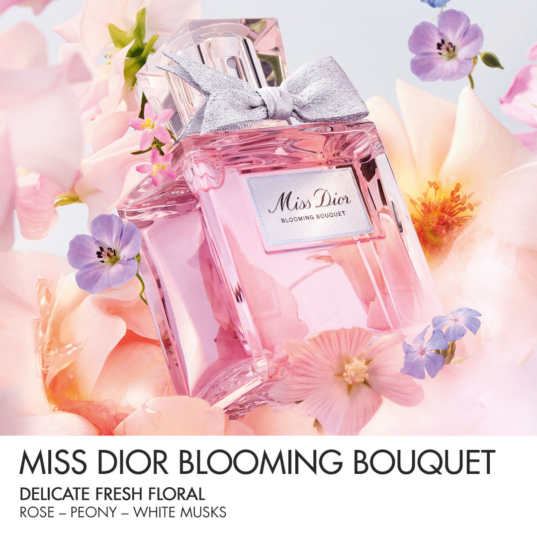 Bright and colourful, Miss Dior Absolutely Blooming is an extravagant floral delight you return to again and again. Its top notes captivate with a joyful, tangy burst of Red Berries. At the heart, a sublime duo of Grasse and Damascus Roses embraces a sensual Peony accord. This infinite blooming of fresh flowers is comforted in a base of White Musk notes.