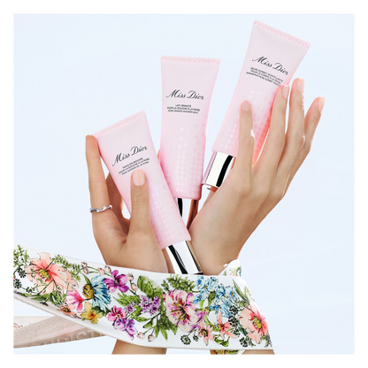 Infused with Centifolia rose water, the Miss Dior bath ritual gently enhances the skin and intensifies the floral trail of your Miss Dior fragrance: