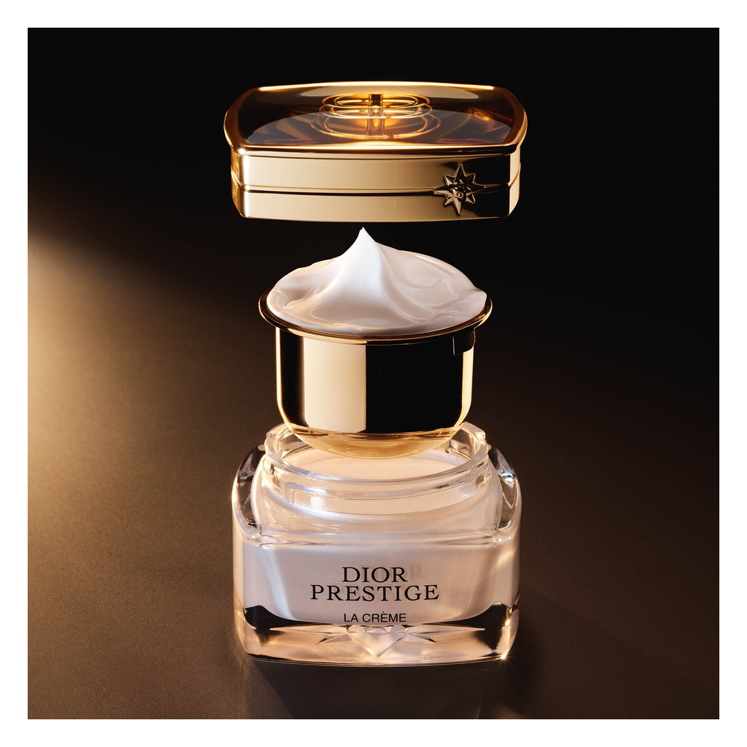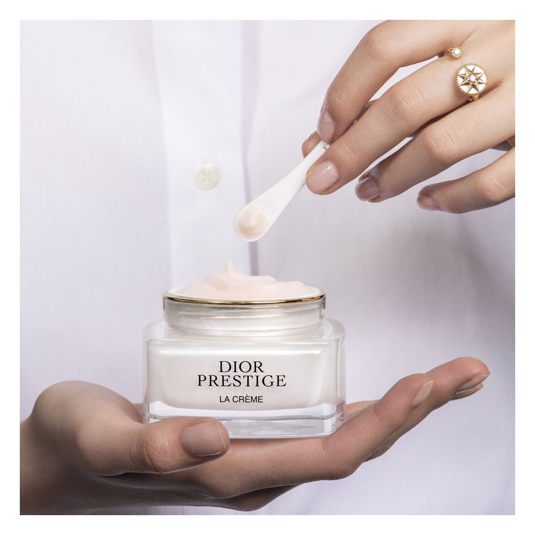 3. Next, apply Dior Prestige La Crème Texture Essentielle. 4. Finish by targeting the eye area with Dior Prestige Le Micro-Sérum de Rose Yeux Advanced.