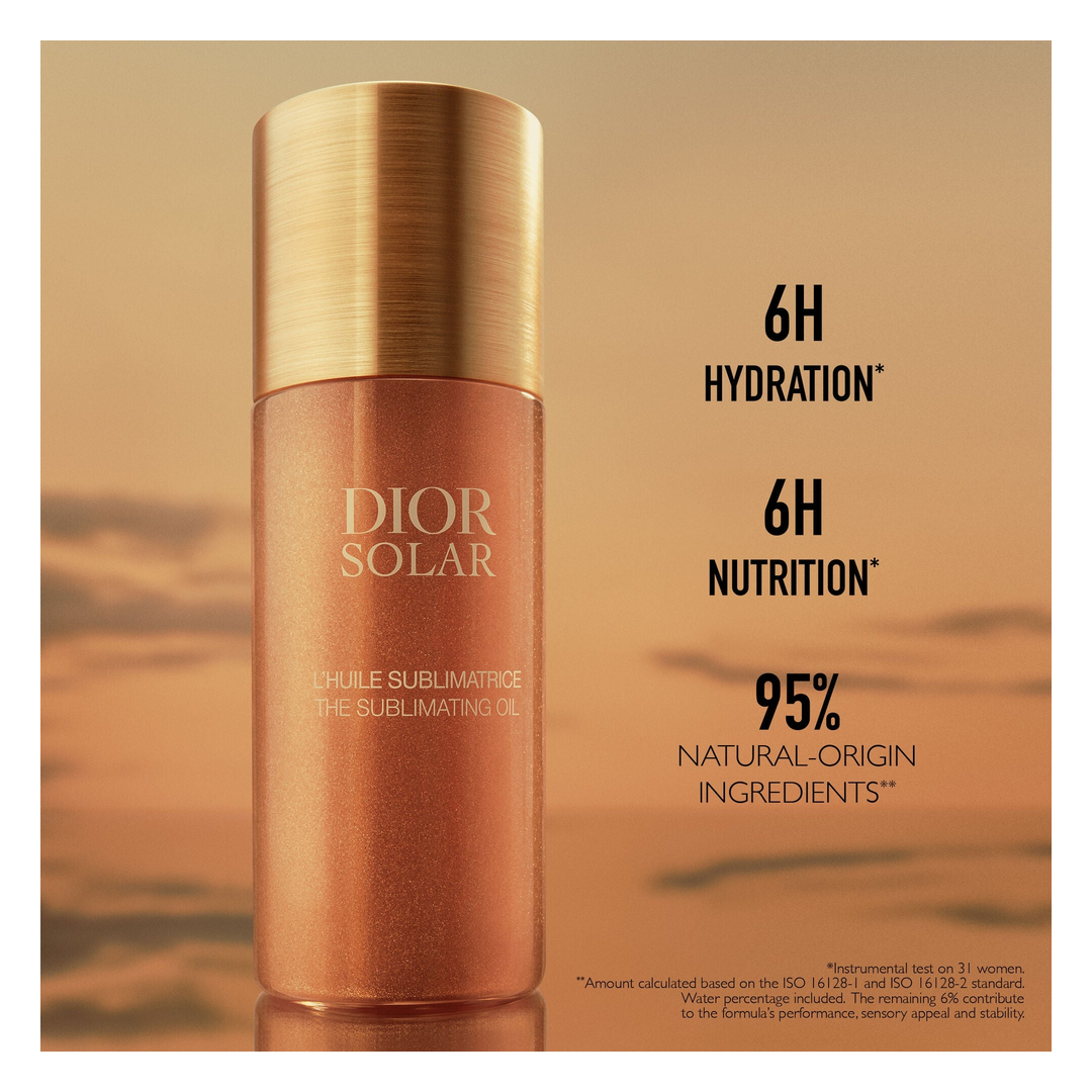 Discover The Sublimating Oil hydrating oil, a radiant oil that enhances your tan and hair with a sun-kissed finish all year long. This Dior oil envelops skin and hair in a luminous, fragrant finish.