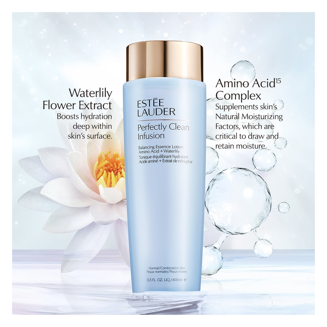 "Estee Lauder Perfectly Clean Infusion Balancing Essence Lotion is an ideal choice for dehydrated normal and combination skin; its refreshing water-like formula instantly refreshes, hydrates and plumps enhancing the results of your serums and moisturisers." - Keavy, Escentual Beauty Team.