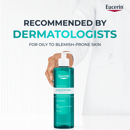 “Eucerin's Dermopure Clinical Gentle Purifying Cleansing Gel is a gentle yet powerful daily cleanser, clinically proven and recommended by dermatologists to control oil and blemishes right from the start.” - The Escentual Beauty Team.