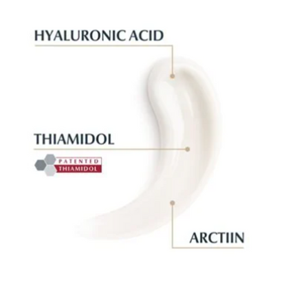 Aqua, Glycerin, CaprylicCapric Triglyceride, Alcohol Denat, Cocoglycerides, Cetearyl Alcohol, Cetyl Palmitate, Diisopropyl Adipate, Panthenol, Glyceryl Stearate, Isopropyl Palmitate, Butyrospermum Parkii Butter, Lauroyl Lysine, Isobutylamido Thiazolyl Resorcinol, Sodium Hyaluronate, Arctium Lappa Fruit Extract, Glycyrrhiza Inflata Root Extract, Sodium Stearoyl Glutamate, Carrageenan, Xanthan Gum, Pantolactone, Sodium Chloride, Citric Acid, Dimethicone, Trisodium EDTA, Ethylhexylglycerin, Phenoxyethanol, Parfum.