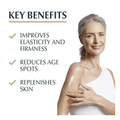 The innovative ingredients behind the rich, anti-ageing body cream are a combination of arctiin, a naturally derived fruit extract which boosts collagen production, Eucerin's patented ingredient, thiamidol, which brightens and evens skin and reduces the look of hyperpigmentation, plus low and high molecular hyaluronic acid which boosts skin hydration. After applying the Eucerin body cream, your skin will look smoother, more radiant, and visibly younger.