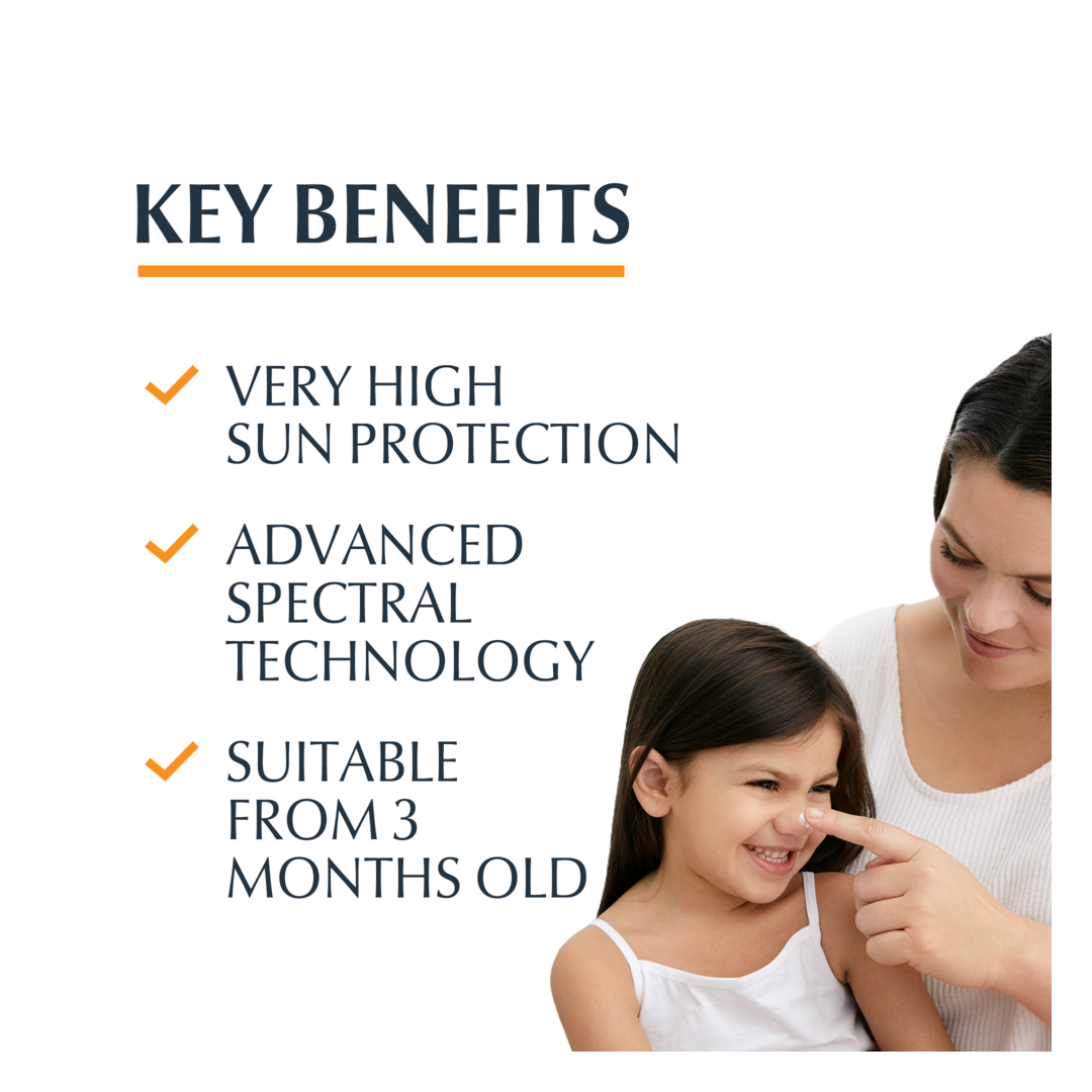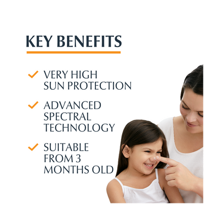 Eucerin Sun Kids Sensitive Protect Gel-Cream SPF50+ is clinically and dermatologically proven to be suitable for children's sensitive skin. It can be used on babies and children from three months old. Meeting the high standards for UVA and UVB protection defined by Cosmetics Europe. The levels of UVA protection are higher than the EU recommendation.