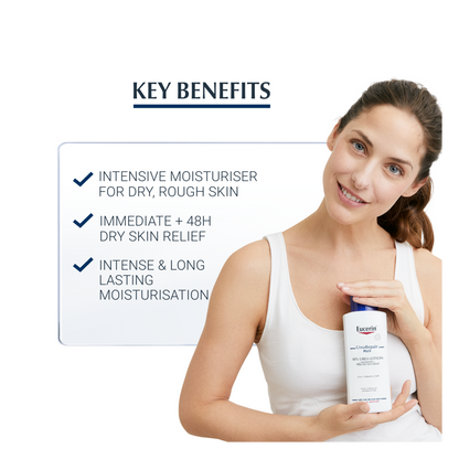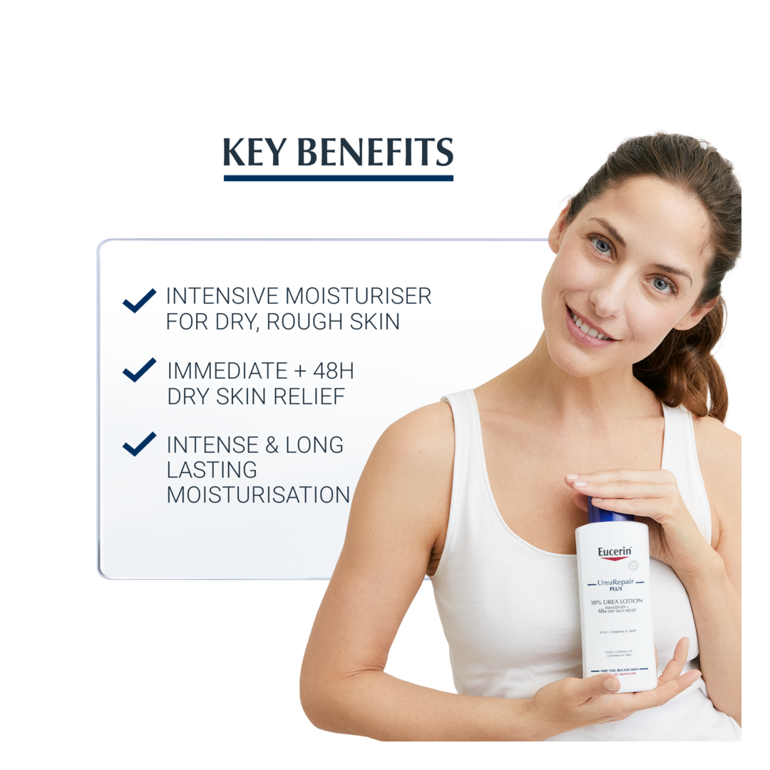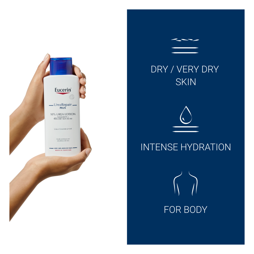 Lock in moisture with the Eucerin Urea Repair Plus 10% Urea Lotion, a body moisturiser for very dry, rough skin that intensely hydrates skin from head to toe.