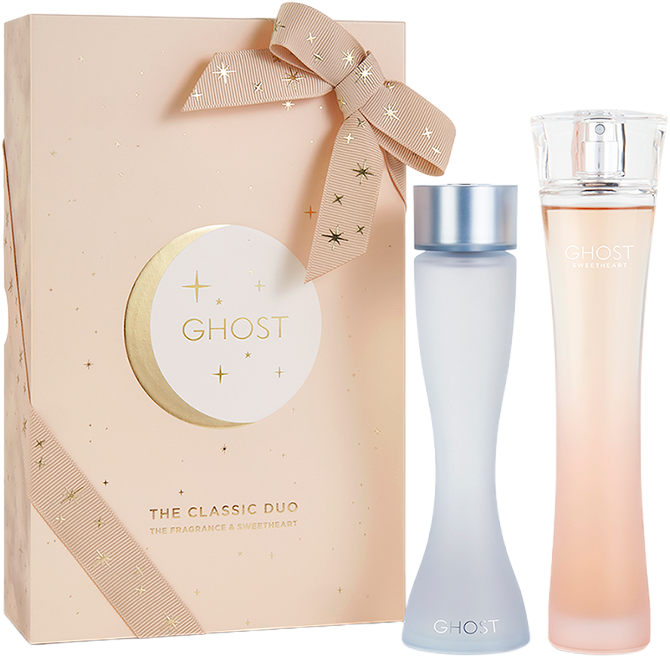 Introducing the iconic fragrance duo: Sweetheart; Romantic, soft and optimistic. Ghost the Fragrance; Timeless, pure and transformative. This luxurious set is perfect to suit your dierent daytime moods.