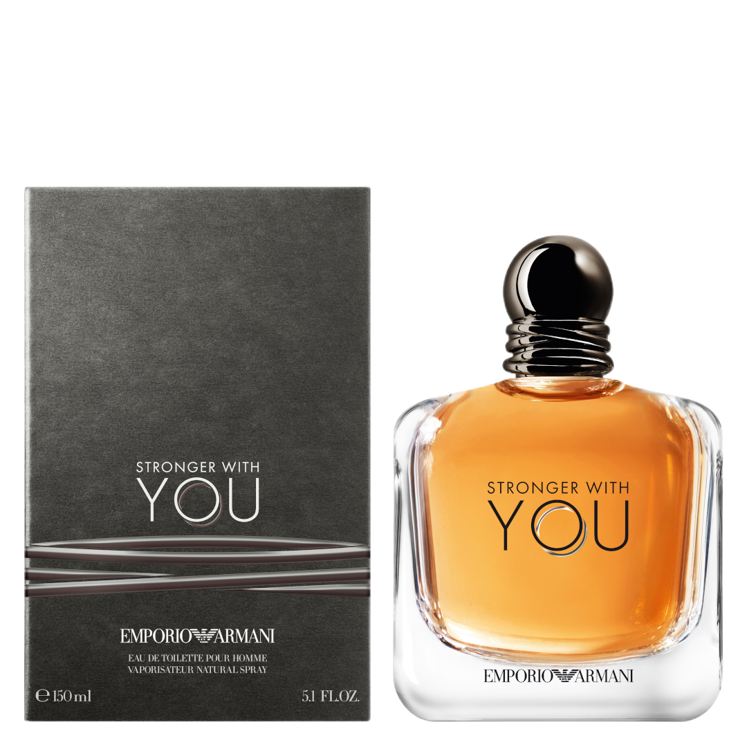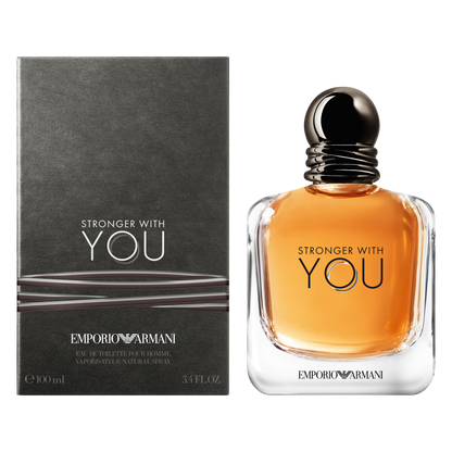 Embrace the excitement of empowerment with the Emporio Armani Stronger With You Eau de Toilette Spray, a spicy and sensual fragrance for men with chestnut and vanilla facets.