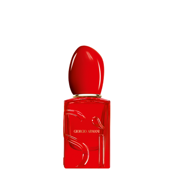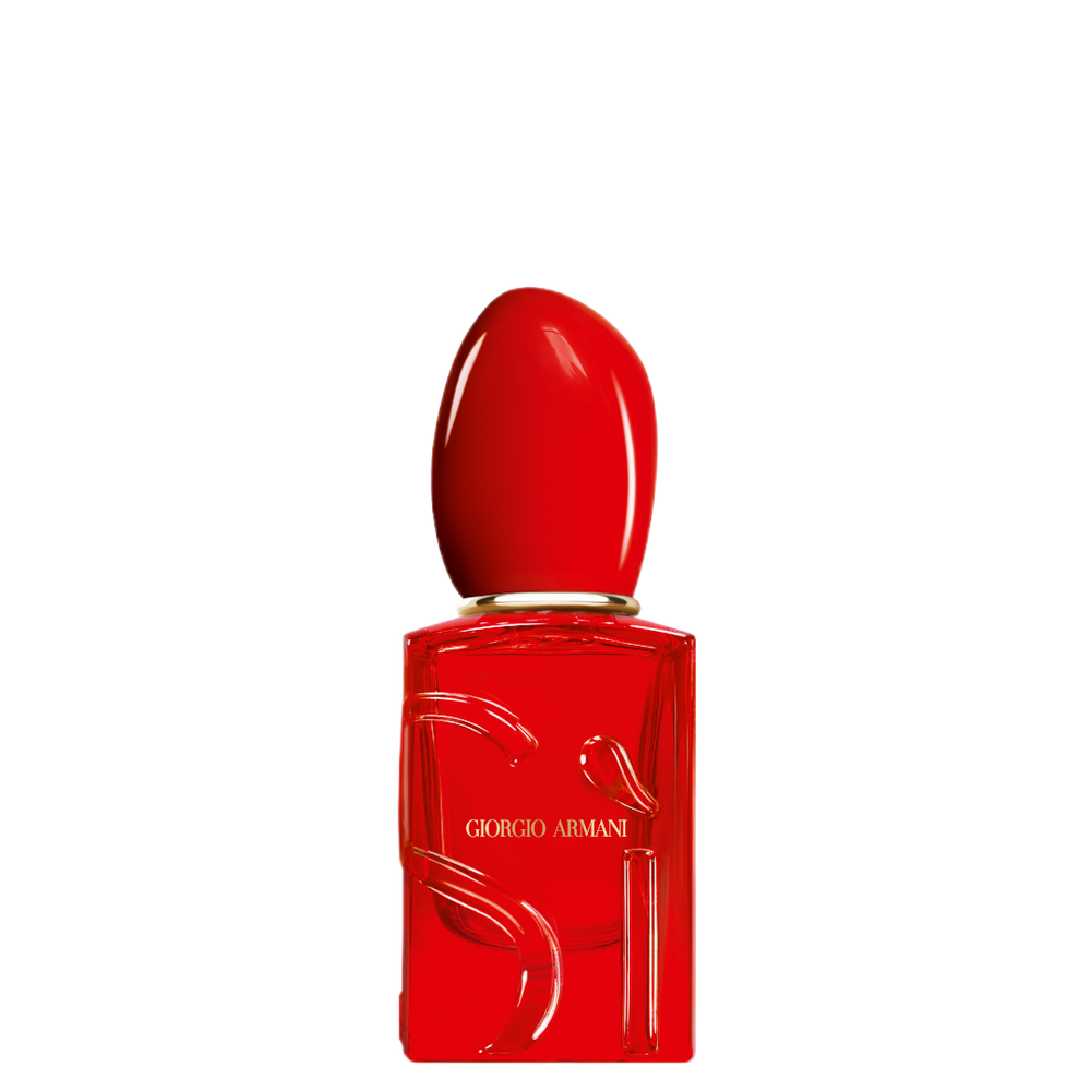 The iconic Si bottle is reimagined as a declaration to passion with its vibrant, translucent red colour. The matching cap adds a bold touch, reflecting the fragrance’s intensity. Embossed with the Si logo, the bottle becomes a precious object of desire.