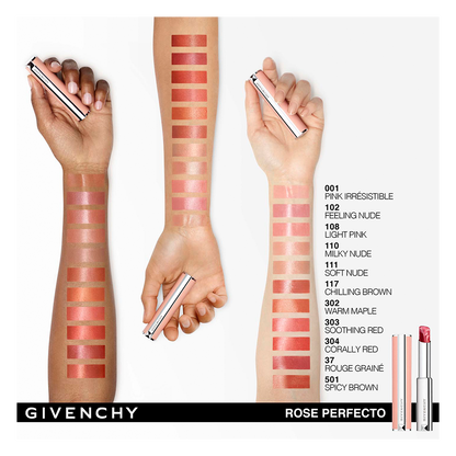 "GIVENCHY Le Rose Perfecto offers the benefits of a nourishing lip balm with a touch of creamy colour, deeply hydrating and defining your lips with a plumping effect." - Keavy, Escentual Beauty Team.