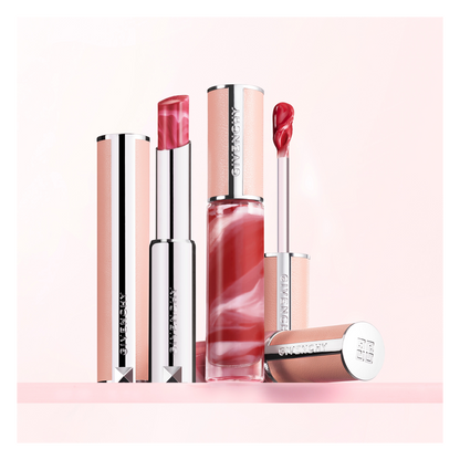 If you want to own a GIVENCHY handbag, we've got the next best thing; the GIVENCHY Le Rose Perfecto nods to their bag designs with a pink genuine leather case with touches of silver engraved with GIVENCHY. When you take off the lid, and twist up your Le Rose Perfecto prepare to speechless as you take in the stunning balm design with white swirls, atop it's imprinted with the house's signature 4G logo.