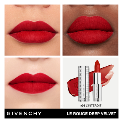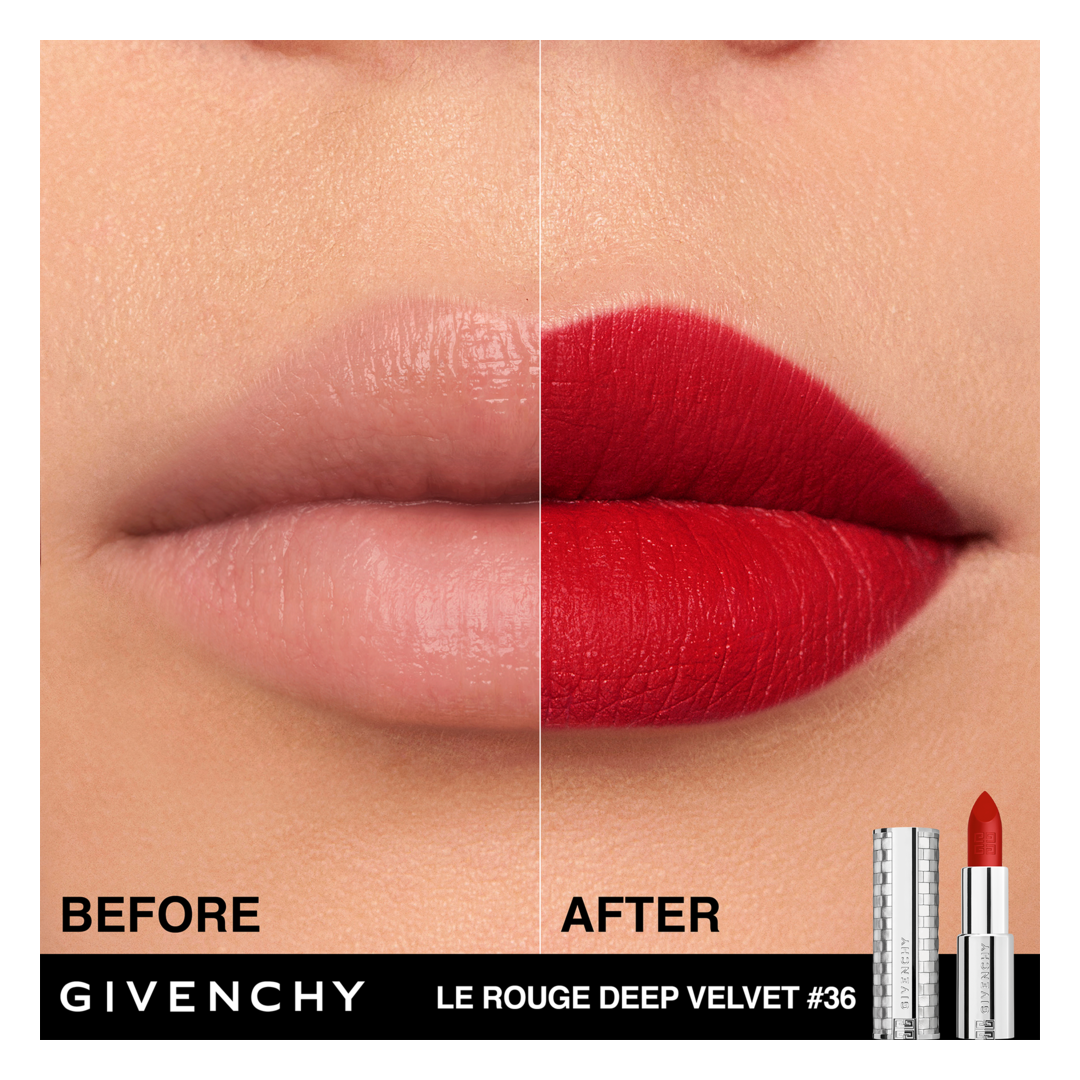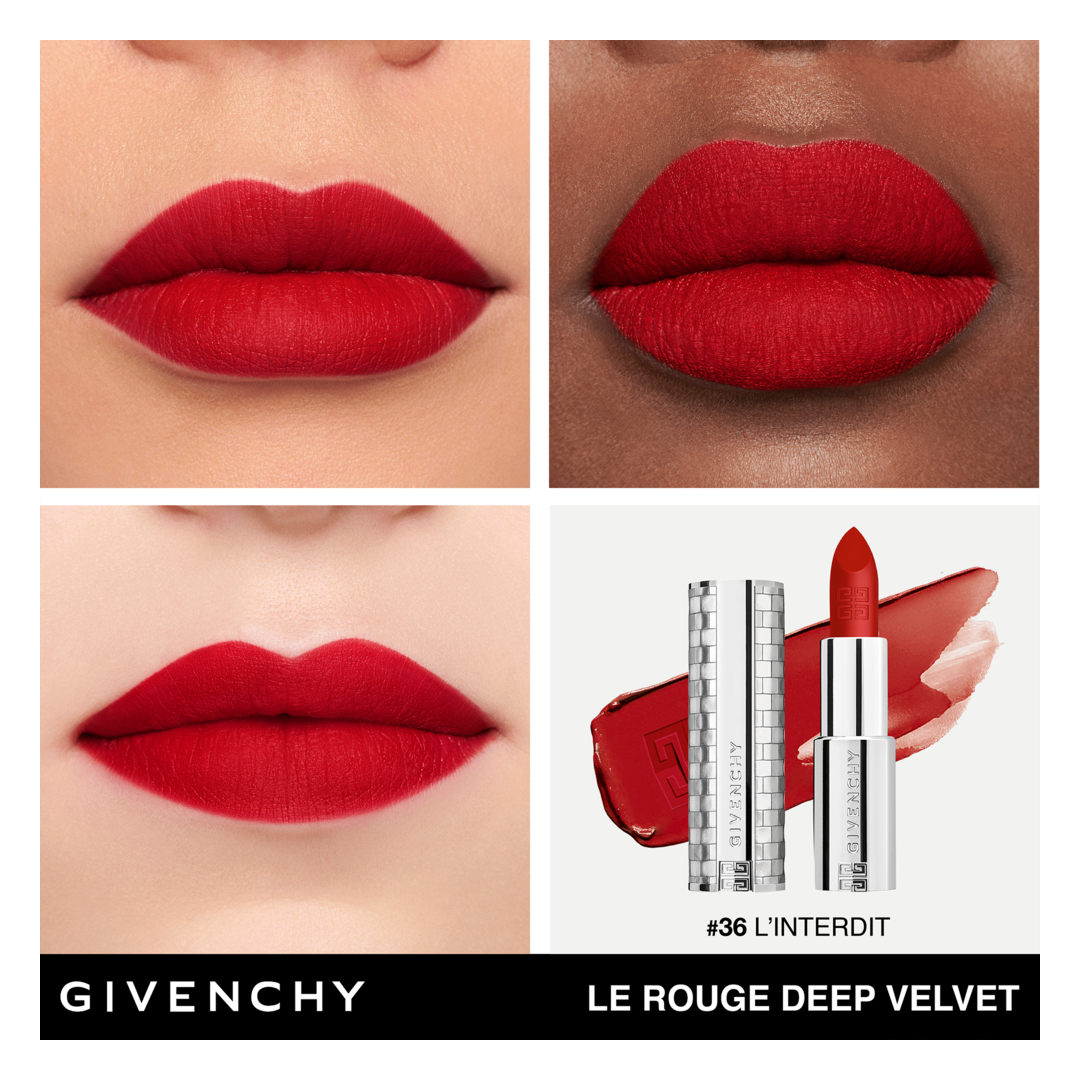 Just on this occasion, Le Rouge Deep Velvet N°36 L'INTERDIT is reimagined in a gorgeous limited-edition case covered with reflective silver sequins for an added touch of sparkle. Reflecting the sensuality and boldness of Givenchy, its generously velvety texture glides effortlessly over the lips to deliver vibrant, residue-free matte colour in a single stroke.