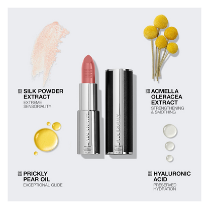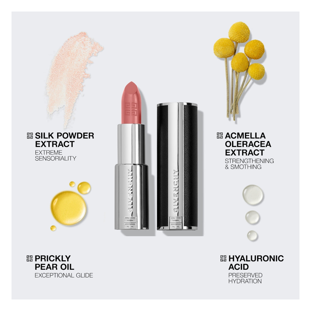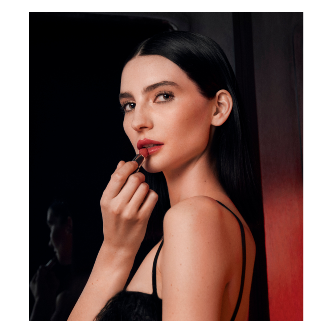 The ultimate fashion statement housed in a rechargeable leather case, Le Rouge Interdit Intense Silk is a timeless and elegant fashion accessory. Its modern texture glides effortlessly over the lips like silk, while delivering a luminous, semi-matte finish. And, thanks to its formula enriched in hyaluronic acid spheres and Acmella Oleracea extract, lips are instantly smoothed and the inner water is locked for up to 24 hours, for absolute comfort. The intense colour is impressively long-lasting, staying vibrant for up to 12 hours.