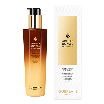 This ”bandage effect” leave-in haircare combines the repairing powers of 4 exclusive honeys chosen by Guerlain Research with Honey Bond-Protect Complexᵀᴹ technology to deeply repair the hair fibre and protect it from humidity, pollution and heat-styling tools up to 230°C. From first use, hair is more resistant against breakage, frizz are controlled and the lengths are disciplined. Day after day, hair is re-plumped, soft and shiny. Its lightweight, silky smooth texture was developed according to the Guerlain art of formulation and is composed of 93% naturally-derived ingredients².