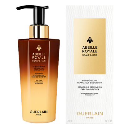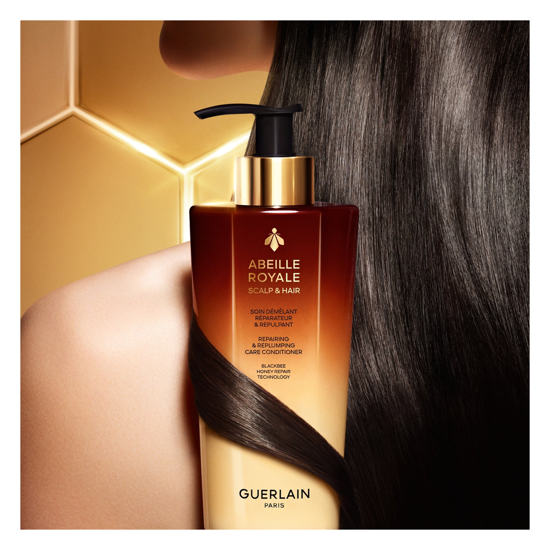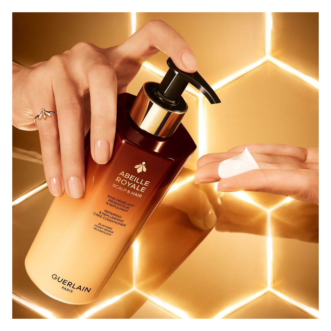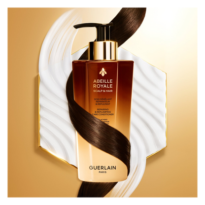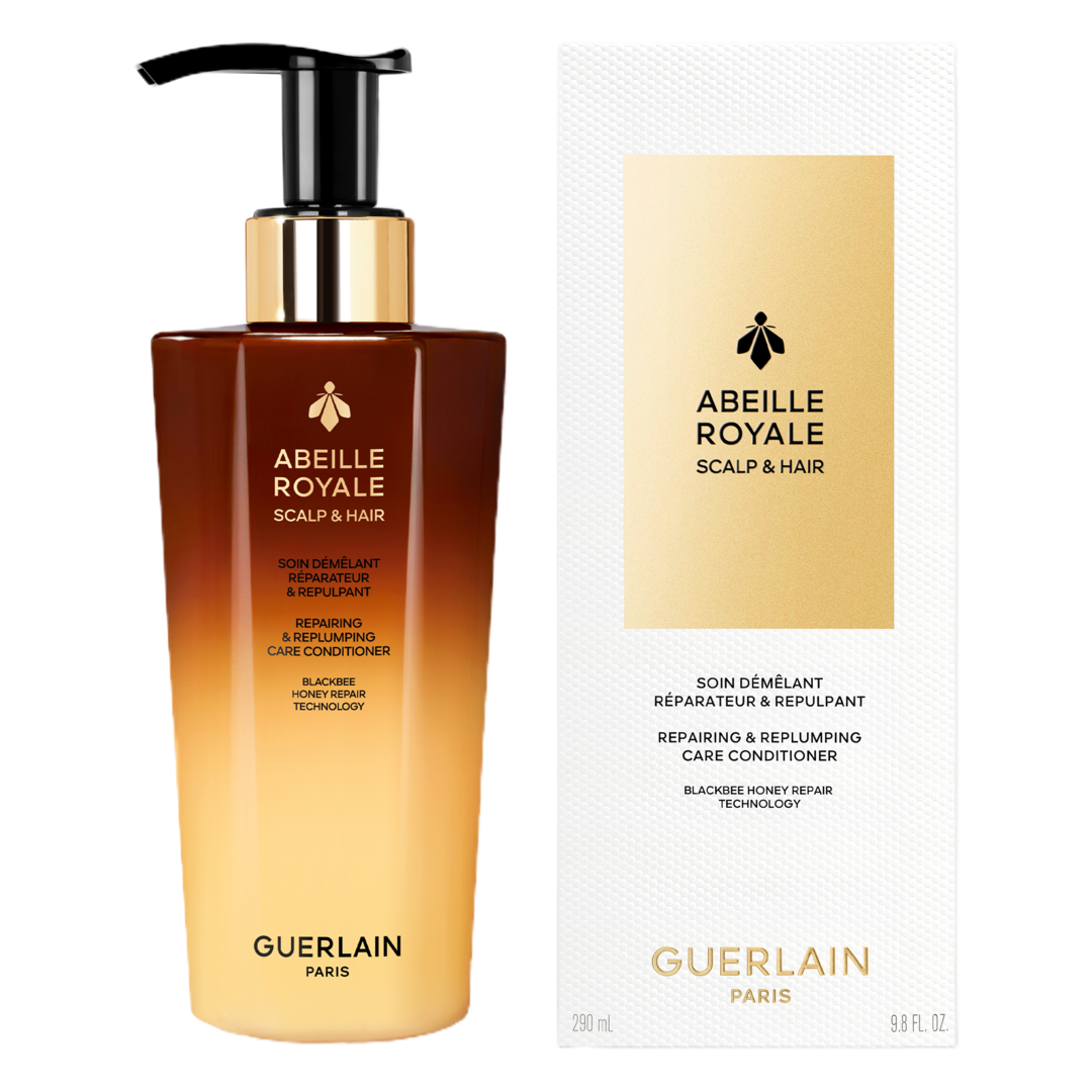 The Repairing & Replumping Care Conditioner combines the repairing powers of four exclusive honeys chosen by Guerlain Research for double action on the scalp and hair. From the first use, the scalp is hydrated without a greasy effect, the hair is shiny and the hair fibre plumped up.