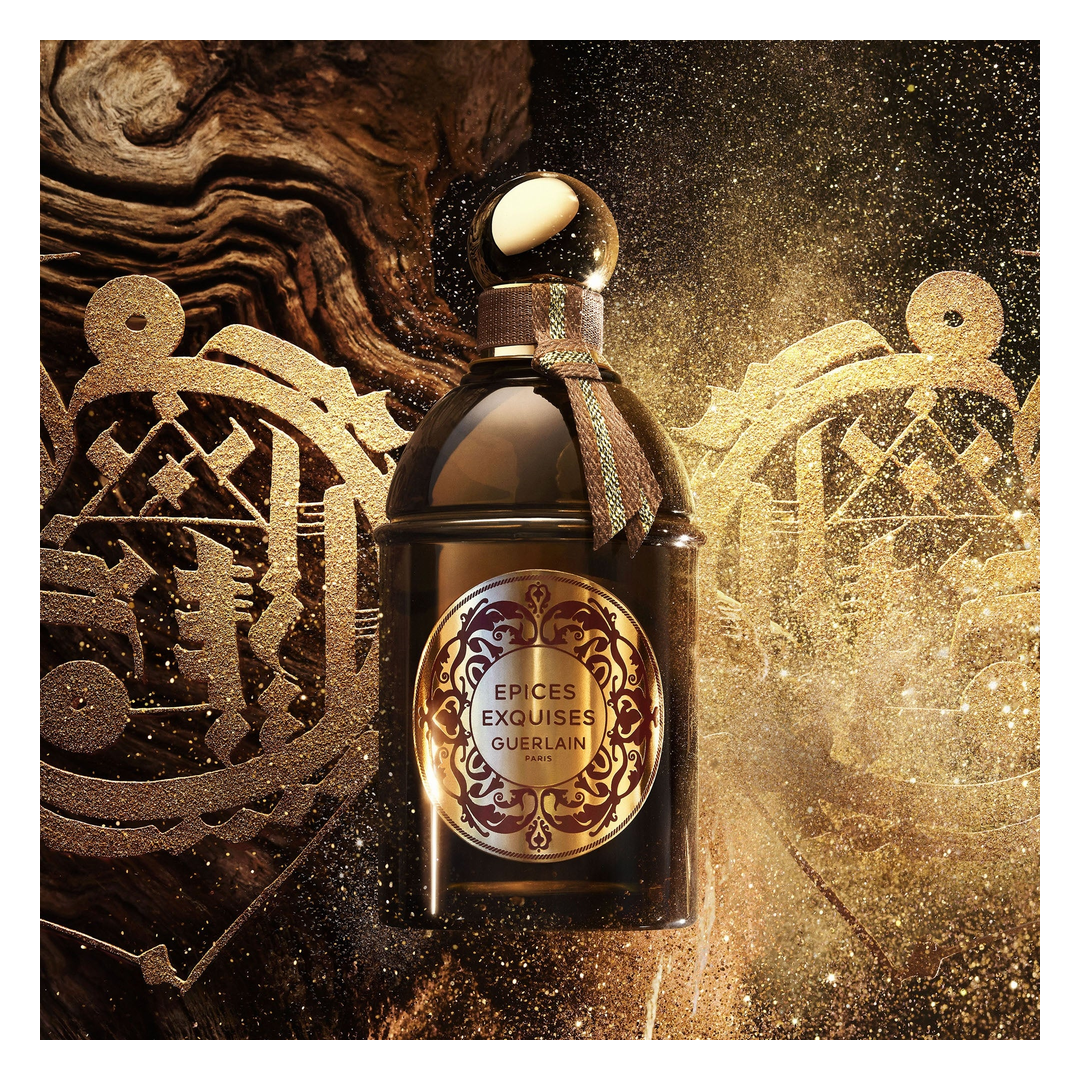 Épices Exquises is the evocation of an enchanting sensory journey. Inspired by the spicy aromas of cardamom-flavoured coffee, Thierry Wasser, Guerlain Master Perfumer, beautifully enhances the contrasts of precious spices in a fragrant chiaroscuro that awakens the senses.Cardamom reveals the exhilarating elegance of its fresh facets on contact with a warm, full-bodied and sensual base, tinged with black pepper and woody notes of oud, patchouli and sandalwood.