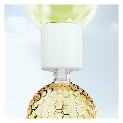 - Embellished with a golden, intricate honeycomb design and a bee motif on the cap.