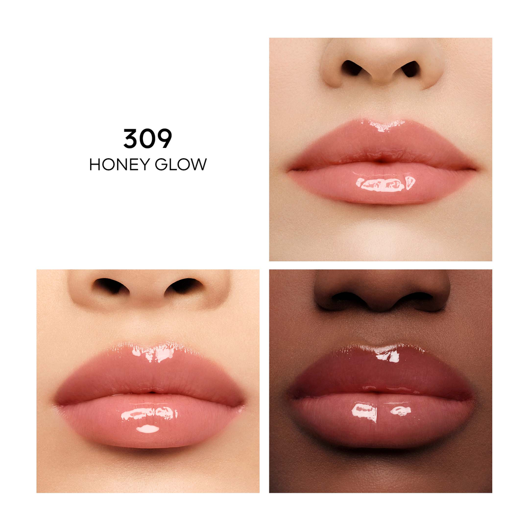 The Guerlain KISSKISS Bee Glow oil is a honey-infused lip oil with 92% natural ingredients. The luxurious lip oil has a nourishing and plumping formula to pamper lips with 24-hour care. Corsican honey provides lasting comfort while propolis smoothes, and royal jelly increases natural hyaluronic acid synthesis by 24% for plumper-looking lips.